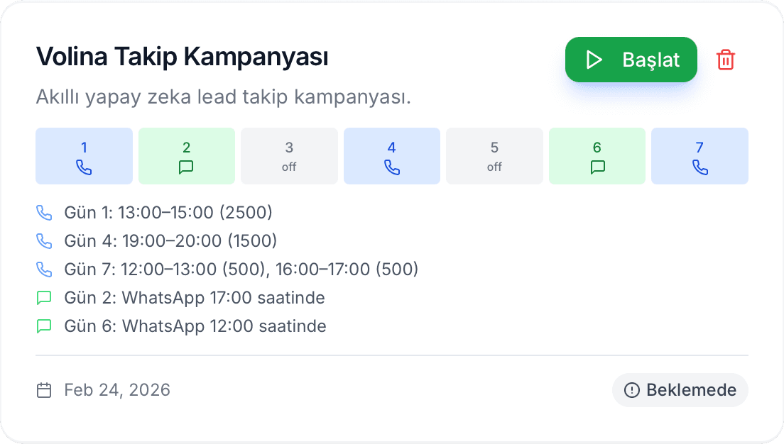 Volina Dashboard, soğuk lead reaktivasyon sürecinizi, outbound arama performansınızı ve satışa aktarılan ısınmış adayları tek ekranda gösterir. Tüm operasyonu ölçülebilir ve yönetilebilir hale getirir.